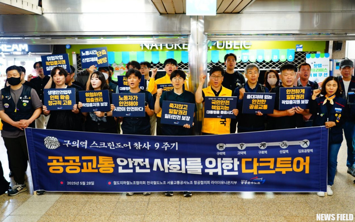 28일, 공공운수노조가 구의역 스크린도어 참사 9주기를 추모하며 서울 곳곳의 사고 현장을 순회했다. ‘공공교통 다크투어’라는 이름으로 진행된 이번 행사는 안전한 공공교통 체계 확립과 노동자의 작업중지권 보장을 강력하게 요구했다.