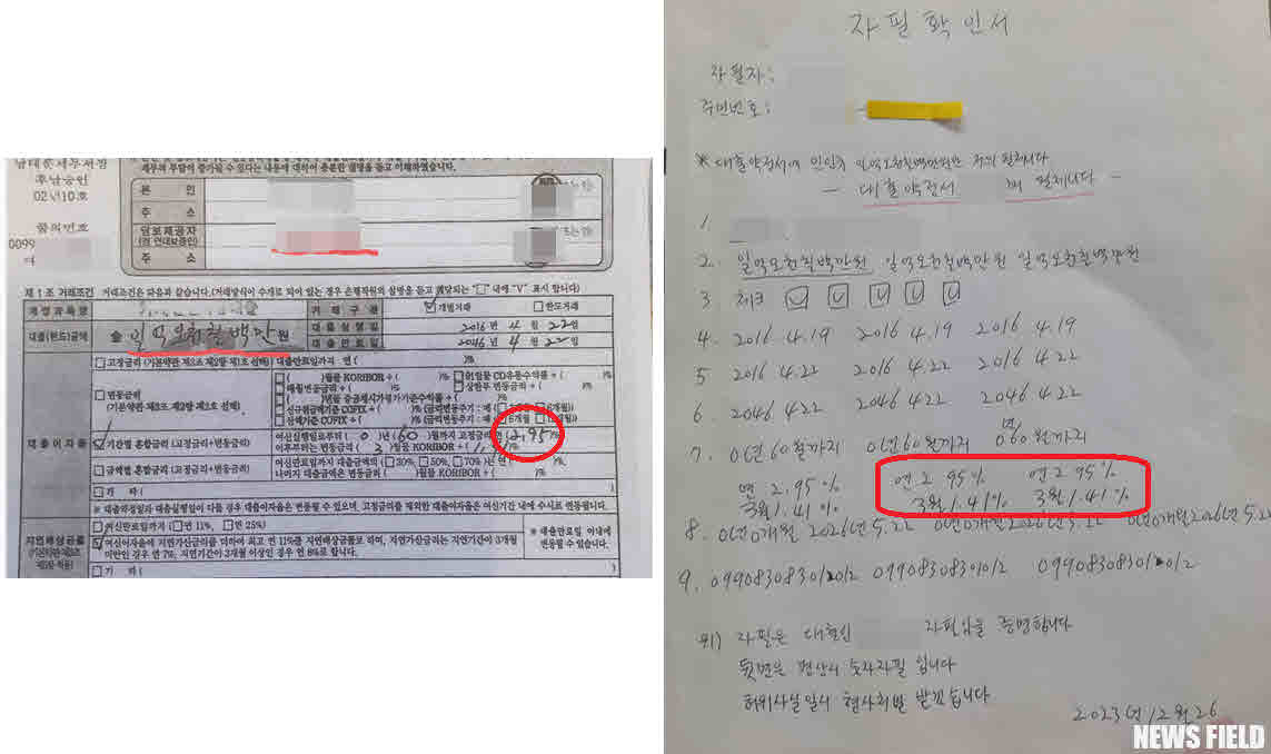 갑작스러운 이자 폭등에 이상함을 느낀 A 씨는 뒤늦게 대출약정서를 확인했고, 자신이 들은 내용과 달리 ‘60개월(5년)간 고정금리 2.95% 적용 후 변동금리로 전환’이라고 기재돼 있었다.