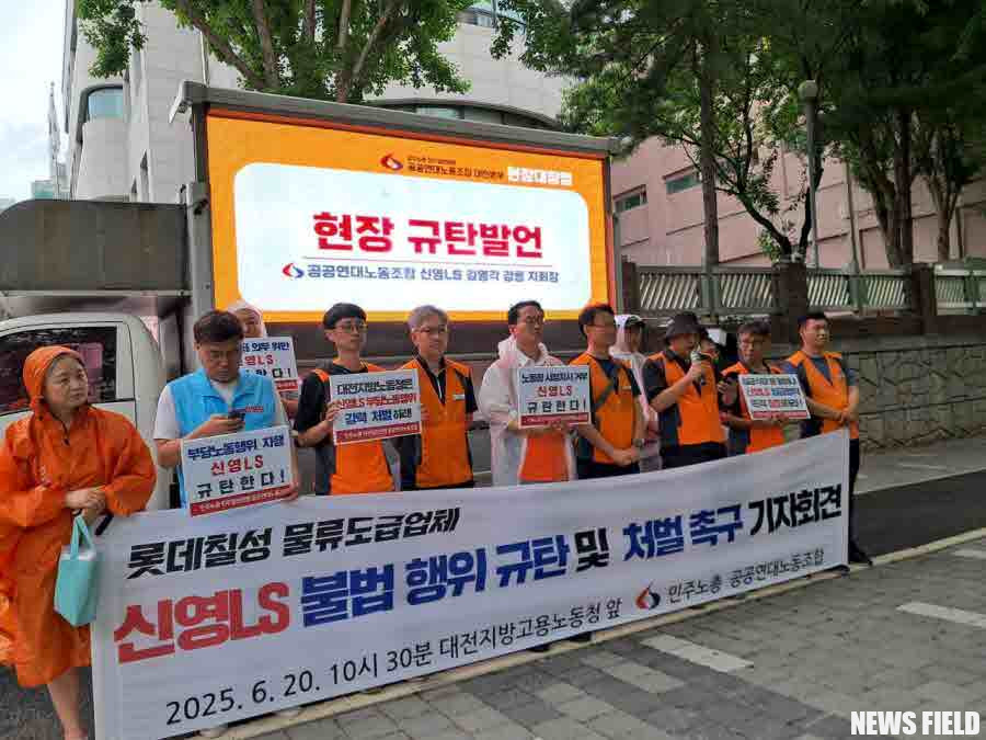 6월 20일, 롯데칠성 물류 위탁업체인 신영LS가 노동관계법을 위반하고 부당노동행위를 자행했다는 의혹에 휩싸였다. 민주노총 민주일반연맹 공공연대노동조합은 이날 대전지방고용노동청 앞에서 기자회견을 열고 신영LS의 불법 행위를 규탄하며 엄중한 처벌을 촉구했다.