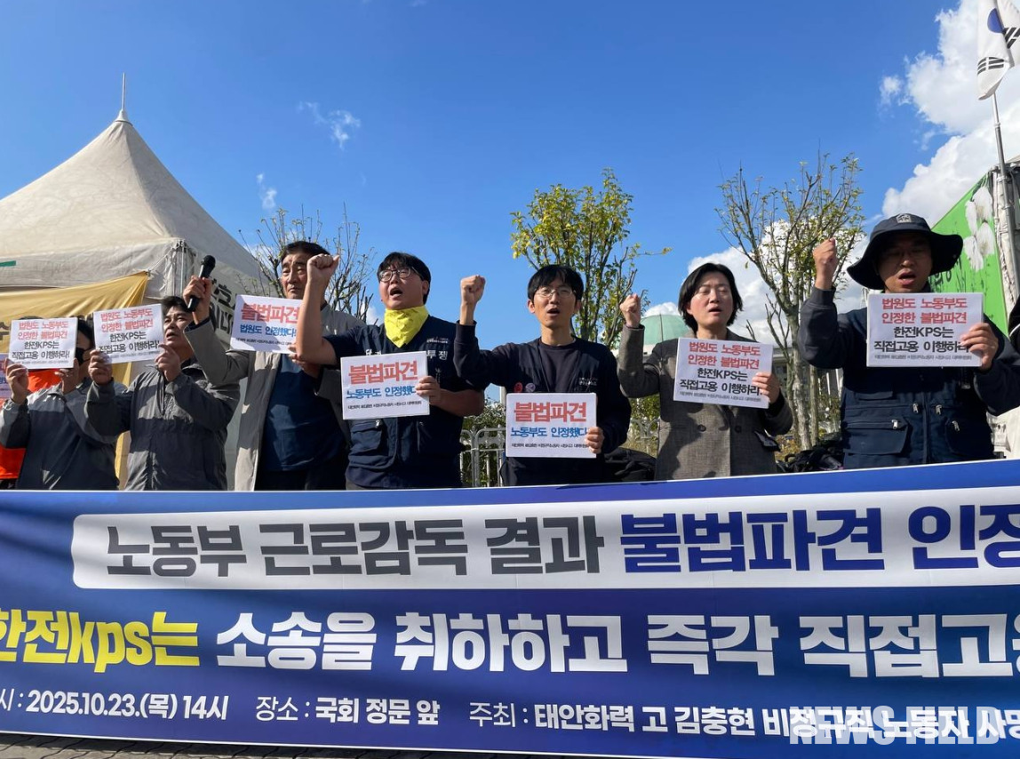 대책위는 이를 두고 “법원이 이미 인정한 불법파견을 정부가 다시 확인한 것”이라며 “공기업이 스스로의 불법을 부정하고 노동자의 생명 위에 서 있다”고 규탄했다. 아울러 “한전KPS는 더 이상 도망칠 곳이 없다. 즉시 시정지시를 이행하고, 태안뿐 아니라 모든 발전소 하청노동자들을 직접고용해야 한다”고 촉구했다.