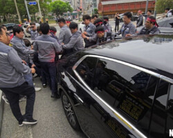 6월 27일(목) 아침, 한화그룹 부회장 김동관이 대화에 나서라는 노동조합의 요구를 그의 측근들이 “밀어!”라는 한마디와 함께 무시했다. 노동조합을 인정하지 않는 노사관계는 6개월째 지속되고 있다. 27일(목) 김동관 부회장의 한화오션 1박 2일 방문은 자신의 3대 세습을 강화하기 위한 목적이었으며, 노동자의 절규를 외면한 채 차에서 내리지 않았다고 노동조합은 주장했다.