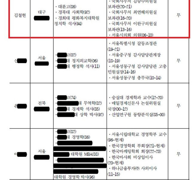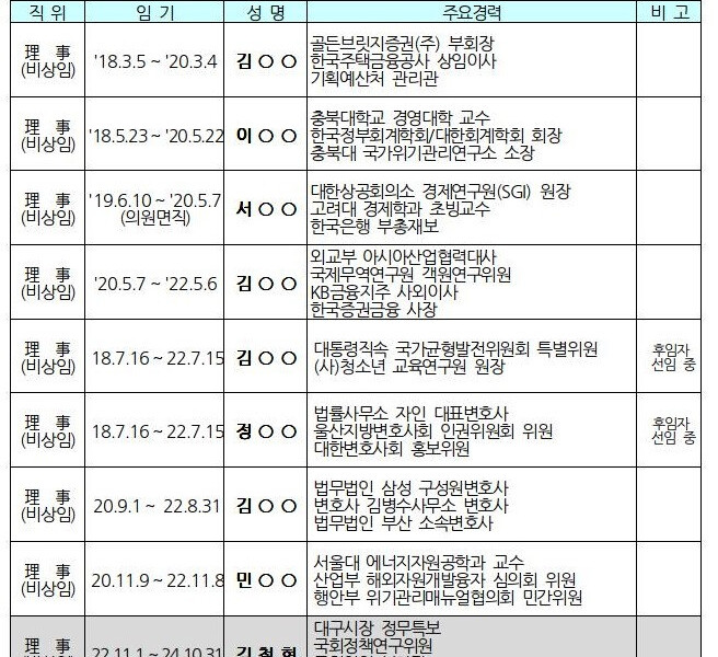 – 그러나 선출된 A 비상임이사, 시의원, 국회의원 보좌관, 정무특보 경력만