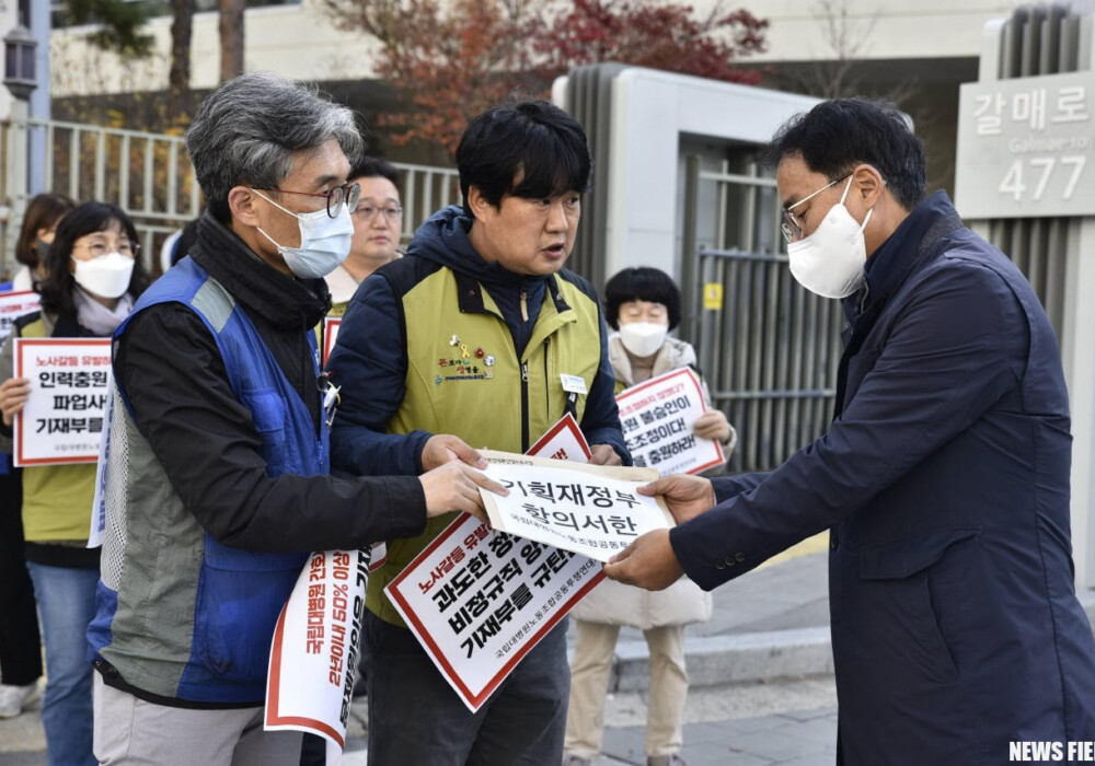 국립대학교병원노동조합 연대체는 기자회견을 마무리하고 기획재정부에 항의서한을 전달했다.