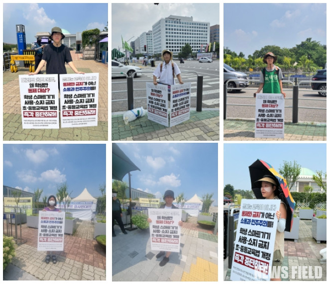 시민단체 연대체인 ‘학생인권법과 청소년인권을 위한 청소년-시민전국행동’(이하 청시행)이 지난 24일 국회 앞에서 기자회견을 열고 학생 스마트기기 금지 법안에 대한 논의 중단을 요구했다. 이 법안은 국회 교육위원회를 통과한 초·중등교육법 개정안으로, 청시행 측은 해당 법안의 문제점을 지적했다. 기자회견 이후 지난 28일부터는 국회 앞에서 릴레이 1인 시위를 이어가며 법안의 문제점을 알리고 있다.