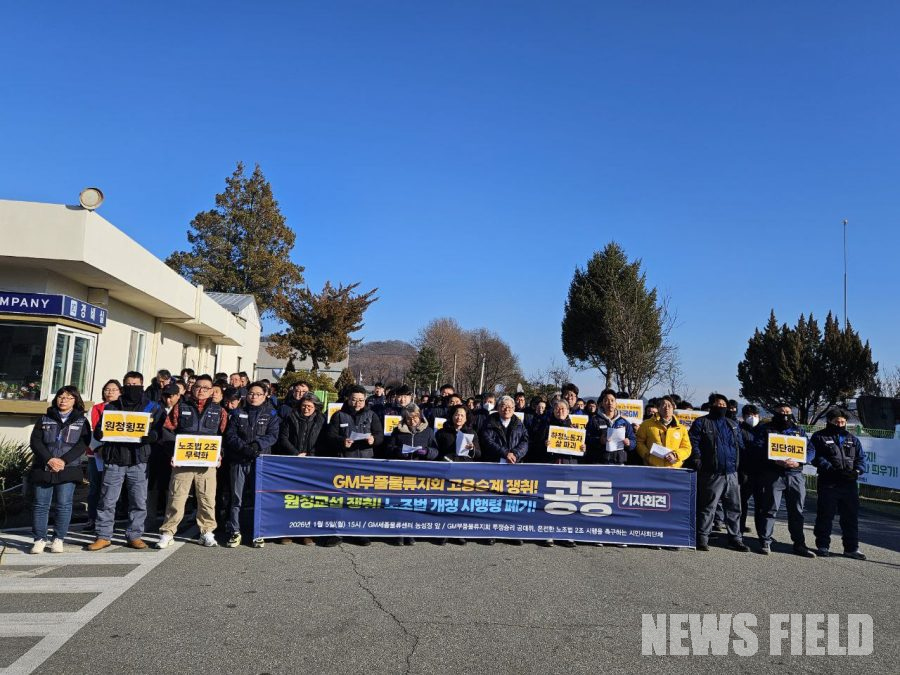 2026년 새해 초 한국GM 세종부품물류센터 하청노동자 120여 명이 집단해고 통보를 받은 가운데, 진보 정당들이 이를 정부의 노조법 무력화가 낳은 ‘노동 참사’로 규정하고 공동 대응에 나섰다.