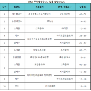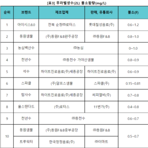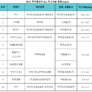 ‣ 무라벨생수, 무기질 및 제조업체 확인 어려워…제품별 무기질 함량 차이 커