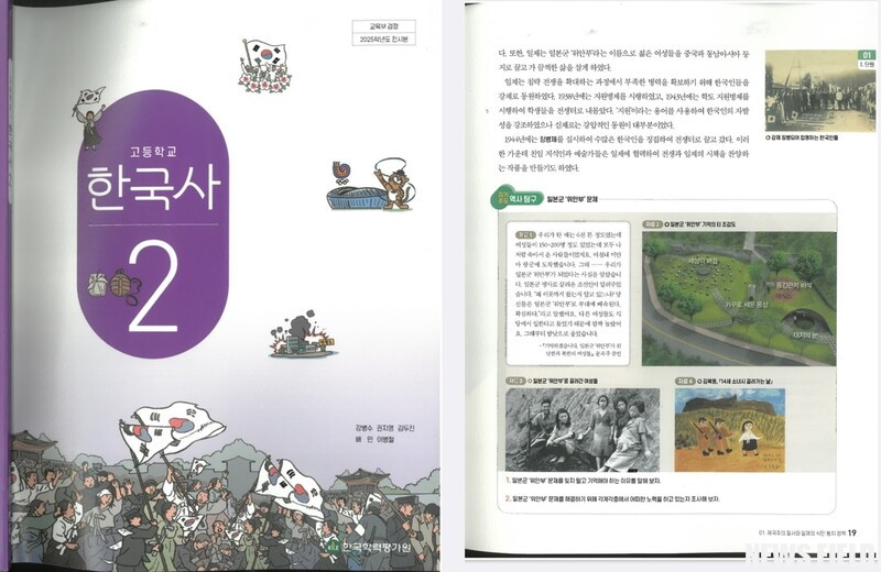 황 대변인은 윤 대통령이 어제 “독립운동 했다고 광복 얻게 된 게 아니다”라는 발언을 한 뒤, 오늘 발표된 역사교과서가 뉴라이트 사상으로 오염된 내용을 담고 있다고 지적했다. 새롭게 검정을 통과한 교과서에서는 ‘위안부’ 문제를 축소하고, 독재를 ‘장기 집권’으로 미화하며, 친일파를 옹호하는 내용까지 포함되어 있다고 전했다.