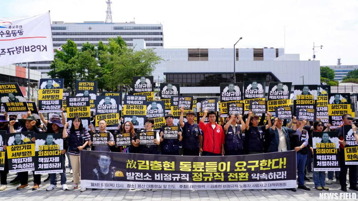 故 김충현 대책위원회와 발전소 비정규직 노동자들이 19일 서울 용산 대통령실 앞과 서울중앙지방법원 앞에서 잇따라 기자회견을 열고 정부와 사법부를 향해 강력한 메시지를 던졌다. 이들은 기획재정부(이하 기재부)를 포함한 실질적인 협의체 구성을 요구하며, 한전KPS의 불법파견을 법원이 조속히 인정해 비정규직의 정규직 전환을 강제할 것을 촉구했다.
