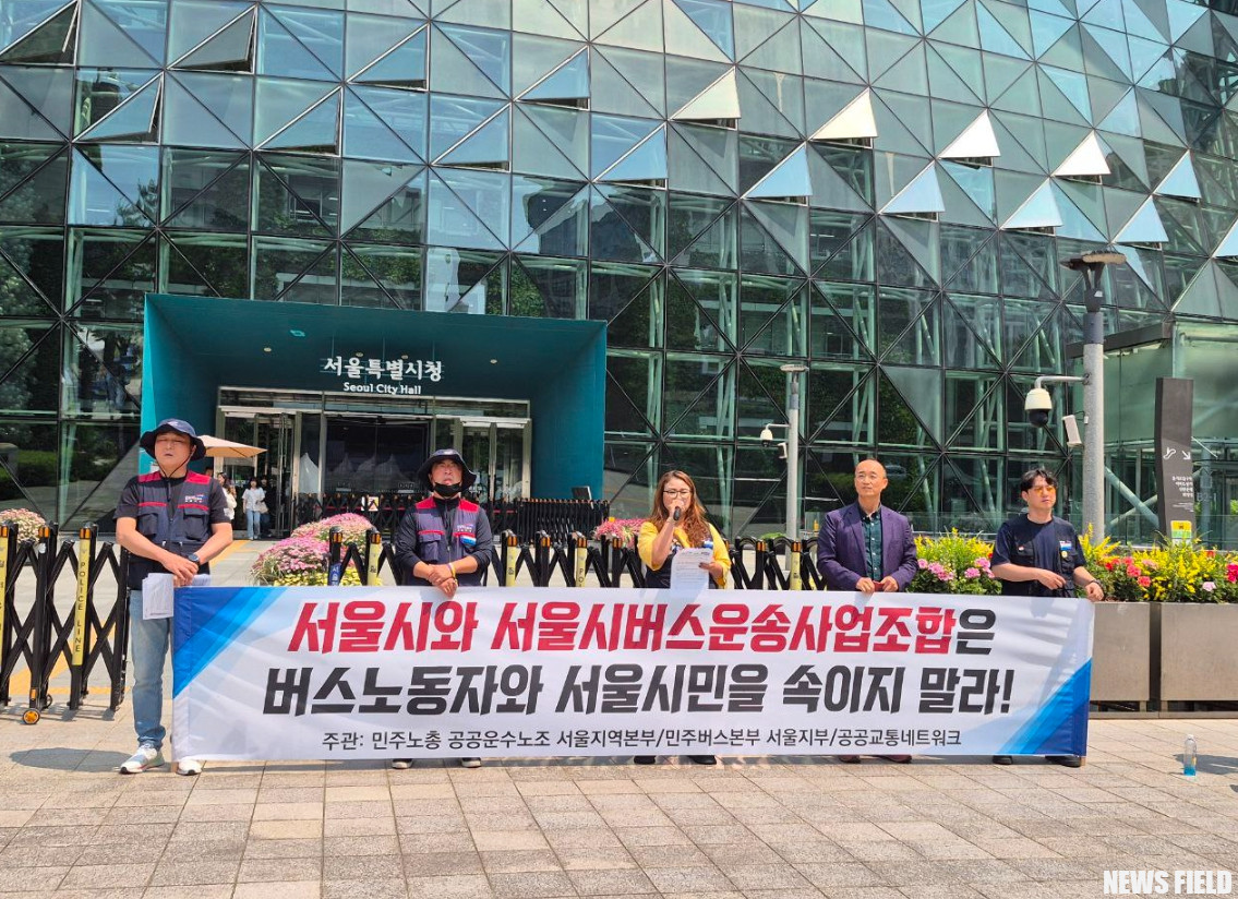 민주노총 공공운수노조 민주버스본부는 27일 서울시청 앞에서 기자회견을 열고 이같이 주장했다.