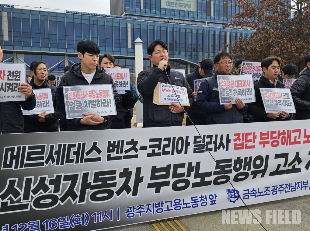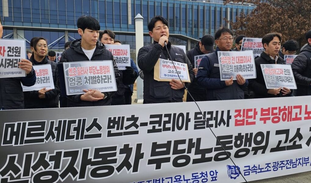 금속노조는 16일 메르세데스-벤츠코리아 딜러사인 신성자동차㈜의 반복적 부당노동행위에 대해 처벌을 요구하는 고소·고발장을 제출했다고 밝혔다. 노조는 회사가 2024년 4월 노동조합 설립 이후 1년 넘게 단체교섭을 거부하거나 해태하며 노동자의 헌법적 권리를 짓밟았다고 주장했다. 이는 노동위원회가 이미 부당노동행위로 판정한 사안이라고 덧붙였다.
