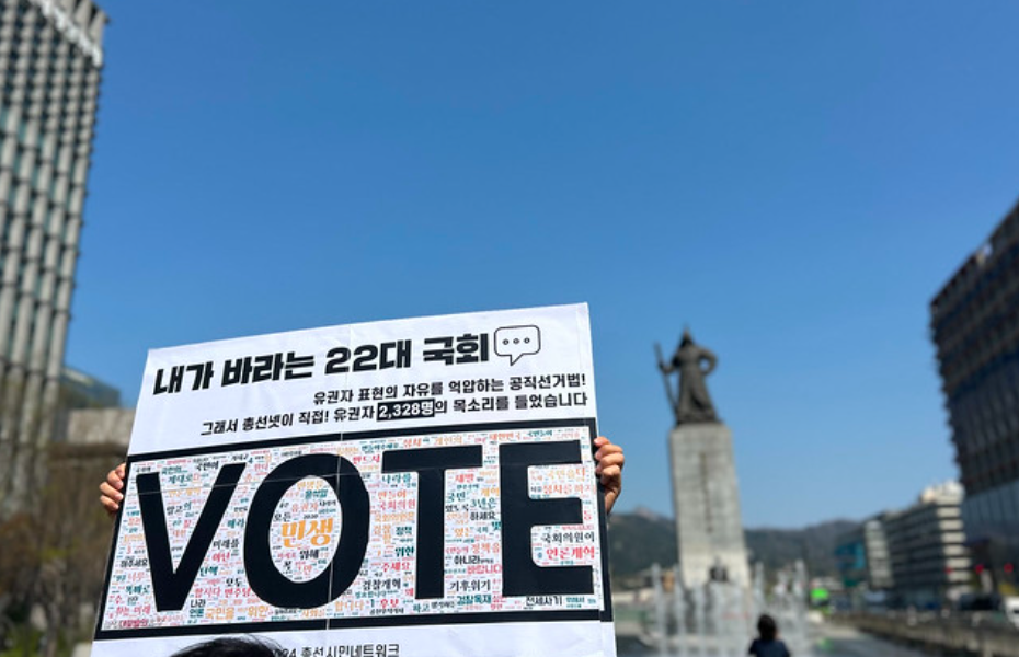 2024 총선시민네트워크(2024 총선넷)는 제22대 국회의원 선거를 하루 앞둔 9일, 광화문 광장에서 기자회견을 열고 유권자·시민들에게 투표를 독려하며 각 정당의 정책 부재와 선심 공약에 대해 강한 비판을 가했다.