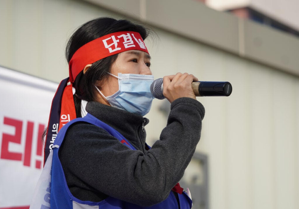 민주노총 양경수 위원장과 보건복지위소속 정의당 강은미 의원 또한 파업에 함께하며 연대사를 전했다.