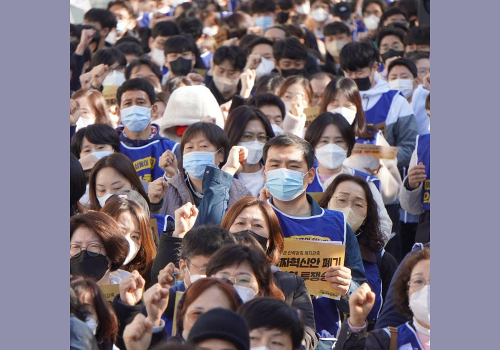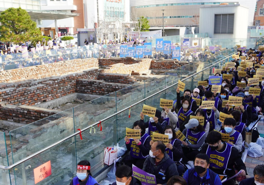 민주노총 양경수 위원장은 인력을 감축해 환자안전을 위협에 빠뜨리는 윤석열 정부의 정책을 규탄하고 노동자들의 투쟁이 사회를 바로잡는 투쟁이 될 것이다고 지적했다.