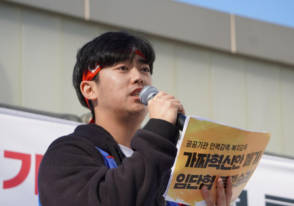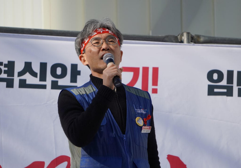 박솔 조합원은 인력감축에 대한 규탄의 목소리를 냈다.