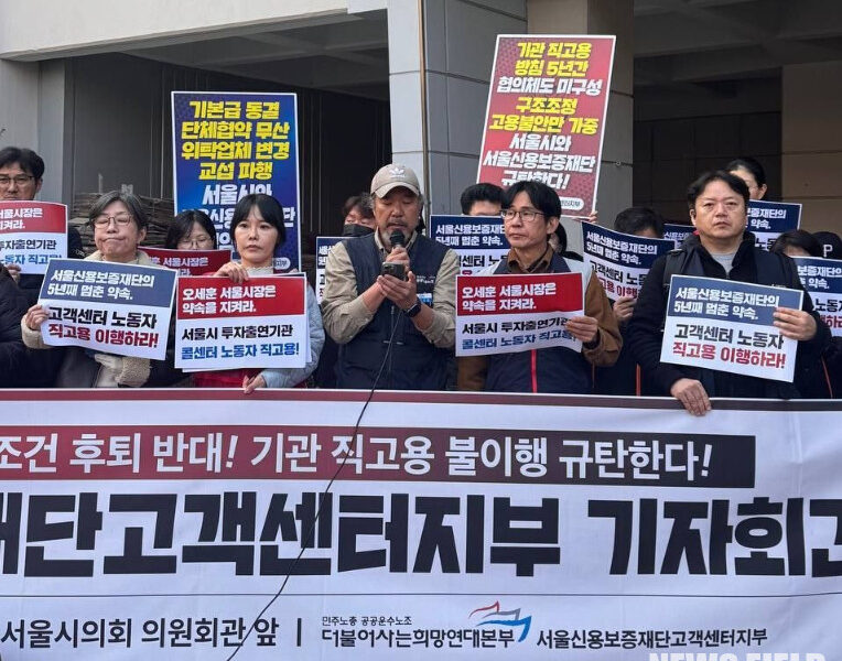 서울신용보증재단은 2026년 말 공개입찰에서 개선 방안을 검토하겠다는 입장만 밝히며 즉각적인 대책 마련에는 나서지 않았다고 지부는 지적했다. 지부는 “재단은 정규직노조의 반대를 이유로 협의기구조차 구성하지 않은 채 5년을 보냈다”며 그 사이 고객센터장이 세 번이나 바뀌어 업무 안정성마저 무너졌다고 주장했다.