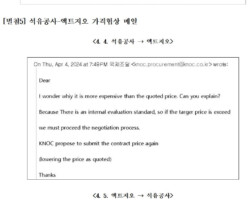 석유공사는 지난 4일 보도자료를 통해 “평가에 투입된 인력 또한 기존 10명에서 12명으로 확대되었고, 외부 조달 업체도 1개사에서 2개사로 확대되었다”고 주장했다. 그러나 권 의원은 아브레우와 석유공사가 주고받은 가격 협상 메일을 공개하며 “아브레우가 인력을 더 써야 한다면서 목표가격보다 높은 입찰가격을 제시했었다”며 “석유공사의 과업 범위가 늘어나서 높은 용역비를 집행한 것처럼 포장했다”고 반박했다.
