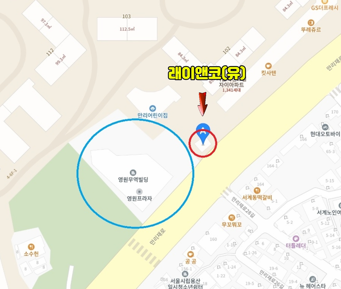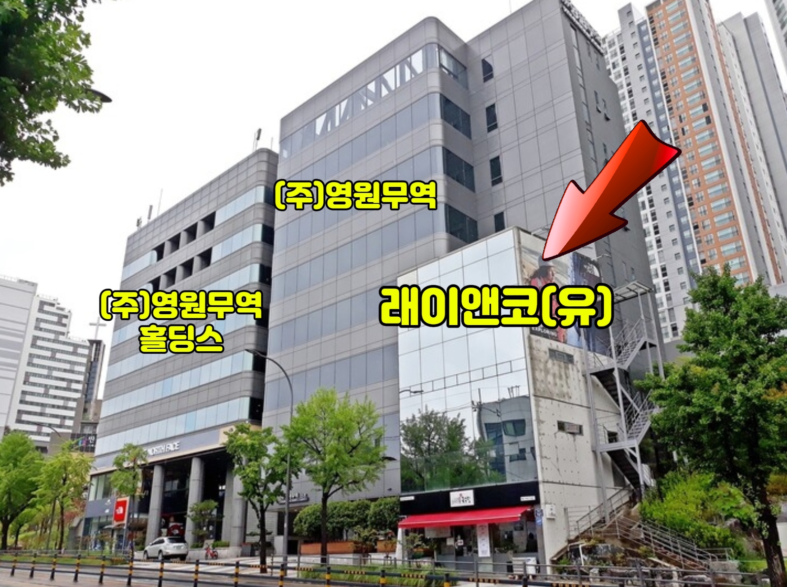 지정자료 허위 제출 의혹이 제기된 2021~2023년 사이 래이앤코의 주소는 ‘서울 중구 만리재로 161’ 3층으로, 현재도 동일하다. 성래은 부회장이 대표이사로 있는 영원그룹 지주회사 ㈜영원무역홀딩스(중구 만리재로 159)와 성기학 회장이 대표로 있는 ㈜영원무역(중구 만리재로 159) 본사 건물과 바로 옆 건물로 맞닿아 있다.