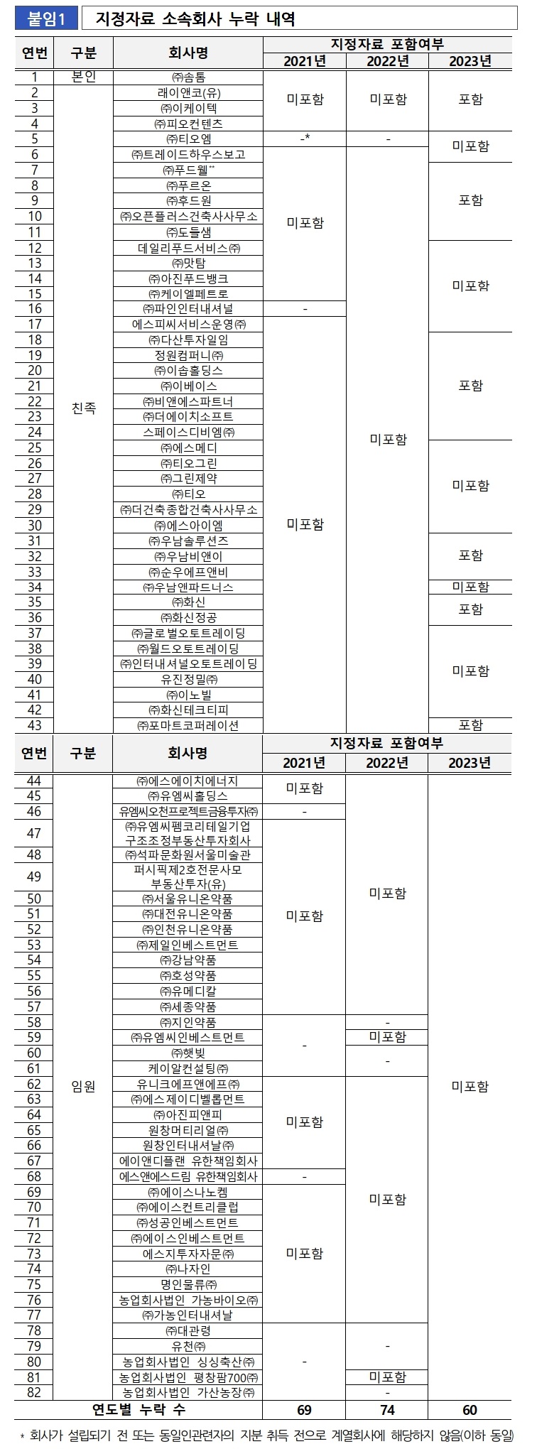 무엇보다 본인과 두 딸, 남동생, 조카가 소유해 ‘모를 수가 없는’ 회사들을 무더기로 누락한 점, 이 역대 최대 규모의 누락을 통해 역대 최장기간(3년) 대기업 시책 적용을 전면 회피한 점은 경제력 집중 억제라는 법의 근간을 훼손한 ‘현저히 중대한 위법’으로 공정위는 규정했다.
