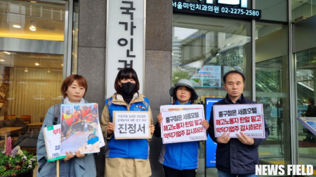 이들에 따르면 서울시 중구청(구청장 김길성, 국민의힘)은 지난 4일 오전 9시 20분 경 세종호텔 해고노동자들의 농성천막을 강제철거했다.