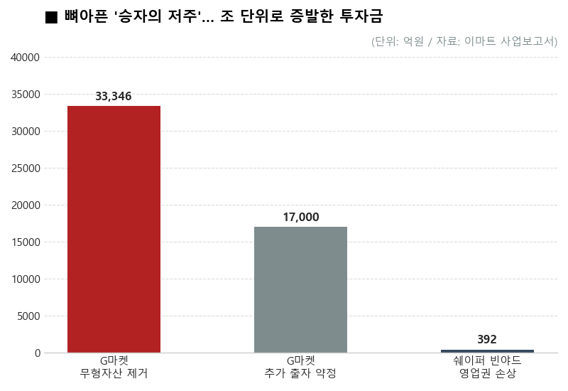 이번 지배구조 개편 과정에서 이마트는 연결 재무제표상 G마켓 관련 무형자산 3조 3,346억 7,800만 원을 최종 제거했다. 회계적으로는 이미 전기 말(2024년 12월 31일 기준)에 해당 자산을 ‘매각예정자산’으로 분류하며 지배력 변동을 예고했으며, 당기인 2025년 11월에 현물출자가 완료되면서 종속기업에서 제외되어 공동기업으로 재편됐다.