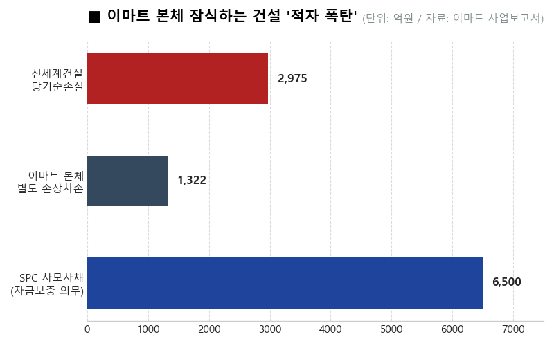 ■ 신세계건설 ‘적자 폭탄’과 6,500억 족쇄… 이마트 본체 잠식하는 재무 독소