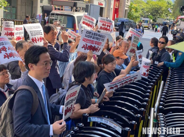 ■ “노동자 두 번 죽였다”…국민의힘 당사 앞에서 규탄