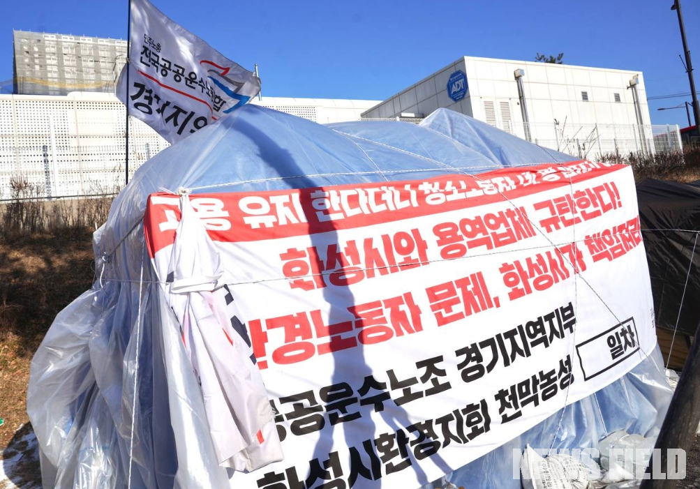 이번 사태는 용역업체가 근무평가를 빌미로 민주노조 간부들을 겨냥해 단행한 ‘표적 해고’에서 촉발됐다. 수년간 화성시의 청결을 책임져온 이들은 1년 단위 계약의 굴레 속에서 고용 승계를 거절당한 채 길거리로 내몰렸다. 이에 공공운수노조 경기지역지부 화성시환경지회는 지난 2일부터 천막농성에 돌입했으며, 화성시의 관리·감독 책임을 묻는 끈질긴 투쟁 끝에 시 측의 직접 합의 요청을 이끌어냈다.