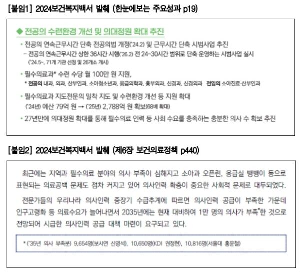 백서에는 2035년 의사 부족 전망을 핵심 근거로 제시하며 증원의 불가피성을 강조한 내용이 담겼다.
