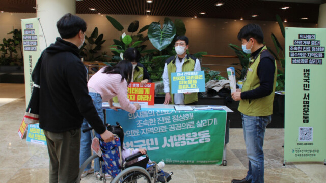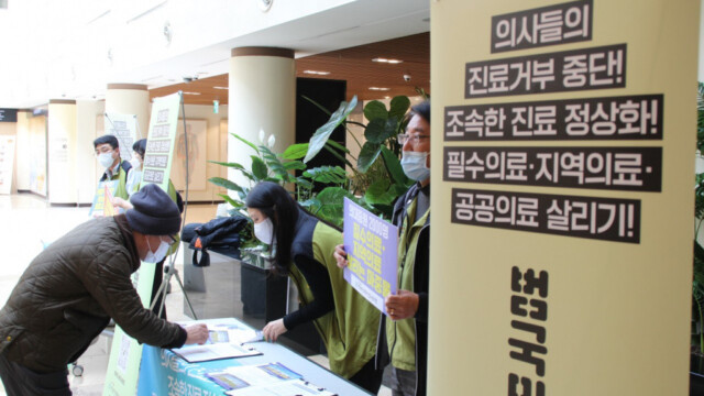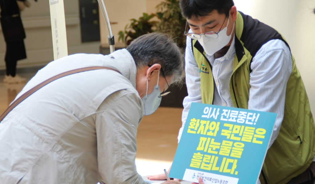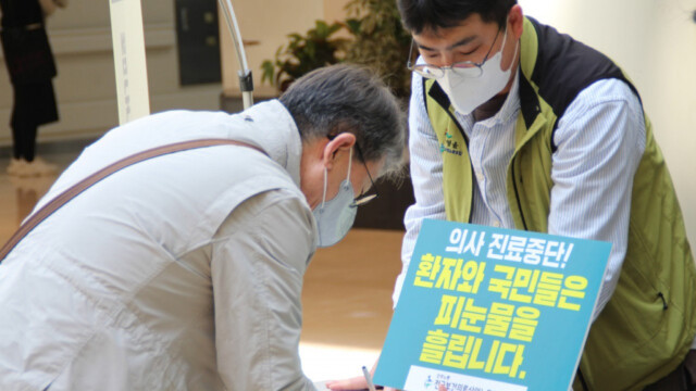 이에 보건의료노조와 한국중증질환자연합회는 지난 11일부터 다음 달 10일까지 한 달간 “의사들의 집단적인 진료거부 중단과 진료 정상화를 촉구하는 100만 범국민 서명운동”을 벌이고 있다.