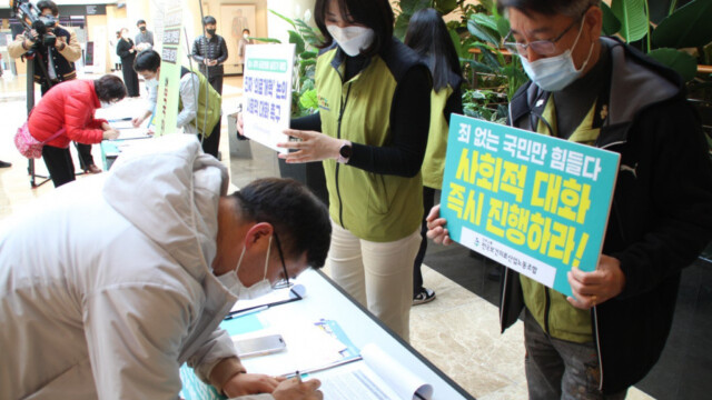 오프라인 서명은 병원 로비, 지하철역, 기차역, 버스터미널 등 시민들이 많은 곳에서 진행되고 있다.