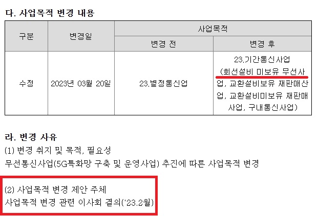 실제 2023년 당시 의결된 정관 내역을 보면 문제가 명확히 드러난다. 포스코DX는 사업부 요청에 따라 기간통신사업 항목을 추가했지만, 직접 통신망을 구축하는 ‘회선설비 보유 무선사업(MNO)’이 아니라, 알뜰폰 사업자에 해당하는 ‘회선설비 미보유 무선사업(MVNO)’으로 잘못 기재했다.