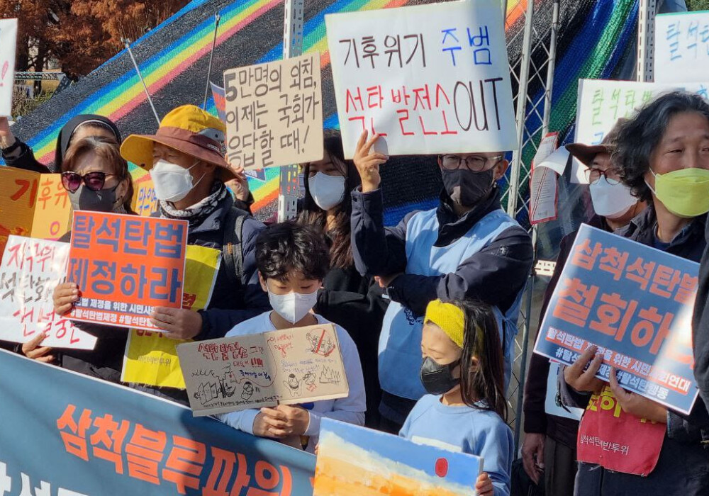 9월 30일 ‘신규 석탄발전소 철회를 위한 탈석탄법 제정’에 관한 청원이 5만 명을 달성해 국회에 회부됐지만, 국회 거대 양당은 묵묵부답이다.