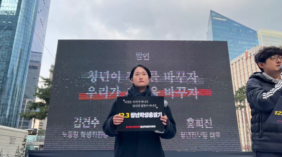 홍희진 청년진보당 대표는 3일 열린 2022 청년학생총궐기에서 “청년들의 연이은 죽음은 윤석열 정부가 국민의 생명과 안전보다 기업의 이익과 자유를 우선시해온 기조와 무관하지 않다”고 비판했다.