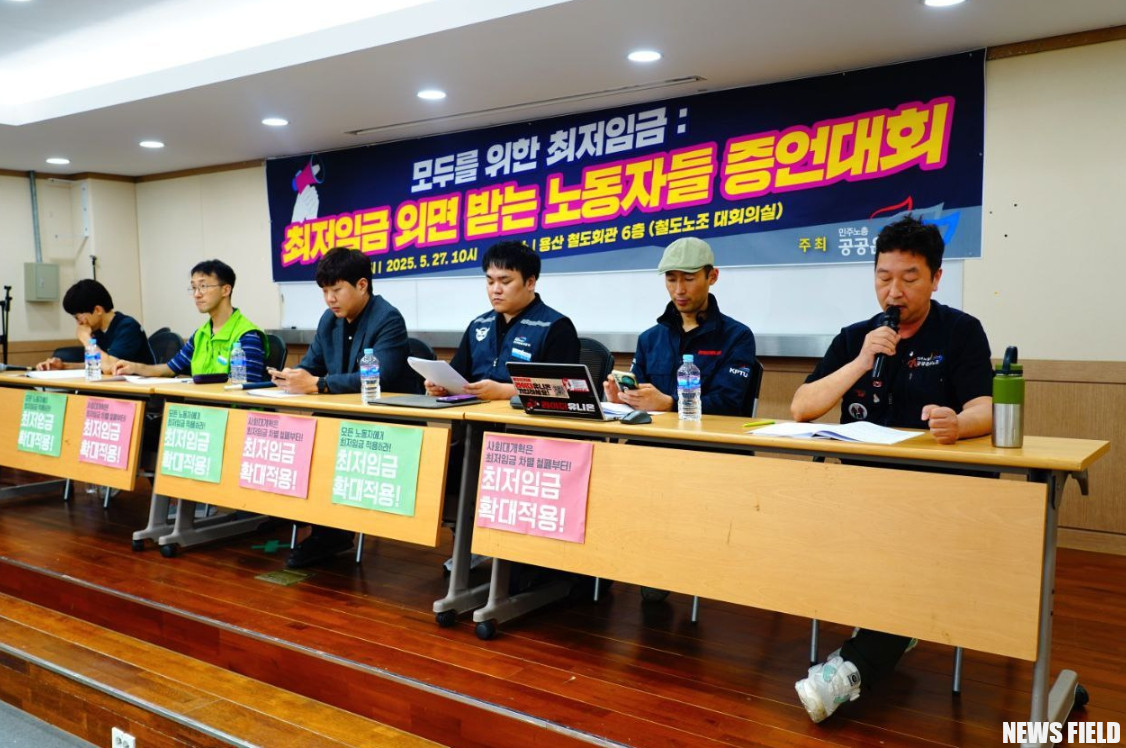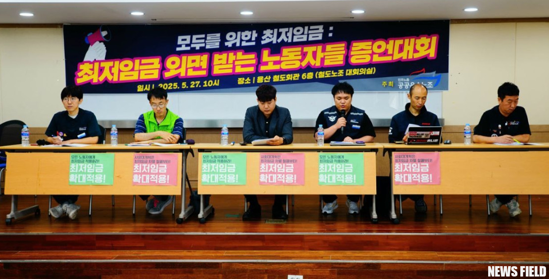 27일, 서울 용산 철도회관에서는 공공운수노조 주최로 ‘최저임금 외면받는 노동자 증언대회’가 열렸다. 이 대회는 최저임금위원회가 정부세종청사에서 2026년에 적용될 최저임금을 심의하는 2차 전원회의를 진행하는 같은 날 개최되어 더욱 의미를 더했다. 노동계는 이번 증언대회를 통해 최저임금 사각지대에 놓인 노동자들의 목소리를 전달하고, 실질적인 제도 개선을 촉구했다.