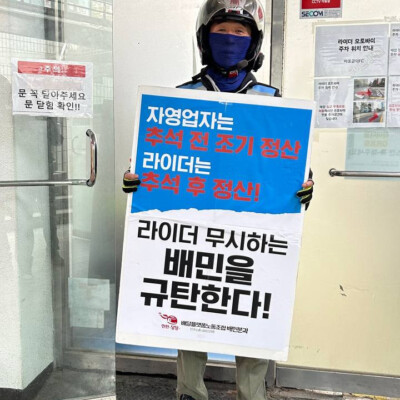 추석전에 돈이 필요한 것은 자영업자나 라이더도 상황은 비슷하지만, 플랫폼의 한 구성원인 라이더를 무시하는 배달의민족 정책으로 라이더는 돈 없는 추석을 보내야 하는 처지다.