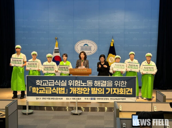 강경숙 조국혁신당 국회의원은 “지금 이 순간에도 폐암 산재로 고통받고 세상을 떠나는 노동자들이 있다”며 “슬픔과 고통의 악순환을 끊기 위해 27일 학교급식법 일부개정법률안을 대표 발의했다”고 설명했다. 강 의원은 “현장의 목소리는 절박하지만, 관련 법안은 여러 번 좌초되고 유실되어 왔다”고 지적하며, “법안 통과가 지연될 때마다 현장의 노동자들은 유해한 환경과 과중한 업무량으로 쓰러지고 있다”고 비판했다.