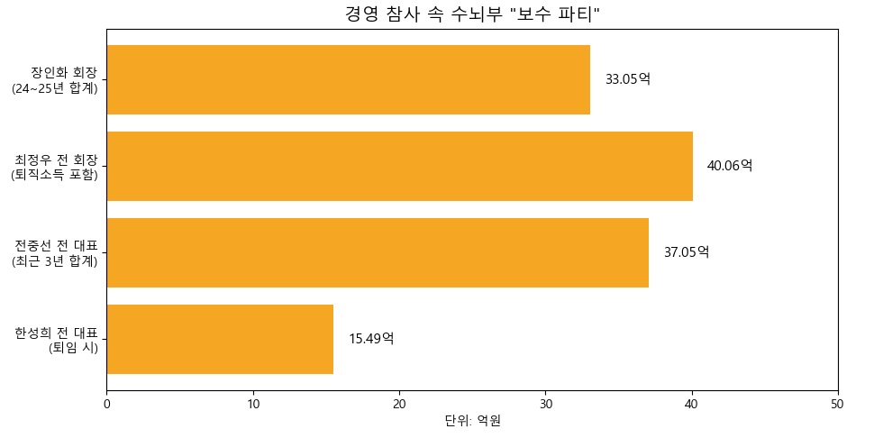 전임 및 현직 수뇌부의 행보도 이와 다르지 않다. 포스코이앤씨의 실적 악화에 직접적인 책임이 있는 전임 경영진들은 2024년 퇴임하며 기록적인 금액을 가져갔다.