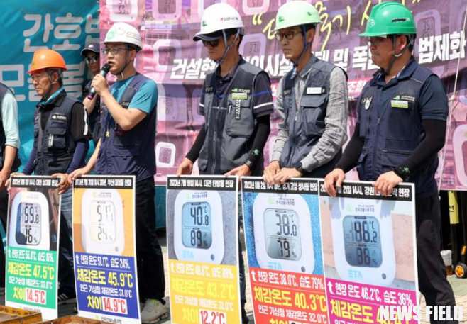 건설노조가 2023년 7월 11일부터 8월 7일까지 건설현장 31개 현장에서 222건의 체감온도를 기록했다. 측정한 결과 기상청이 발표하는 체감온도와 평균 6.2도 정도 차이가 나는 것으로 나타났다.