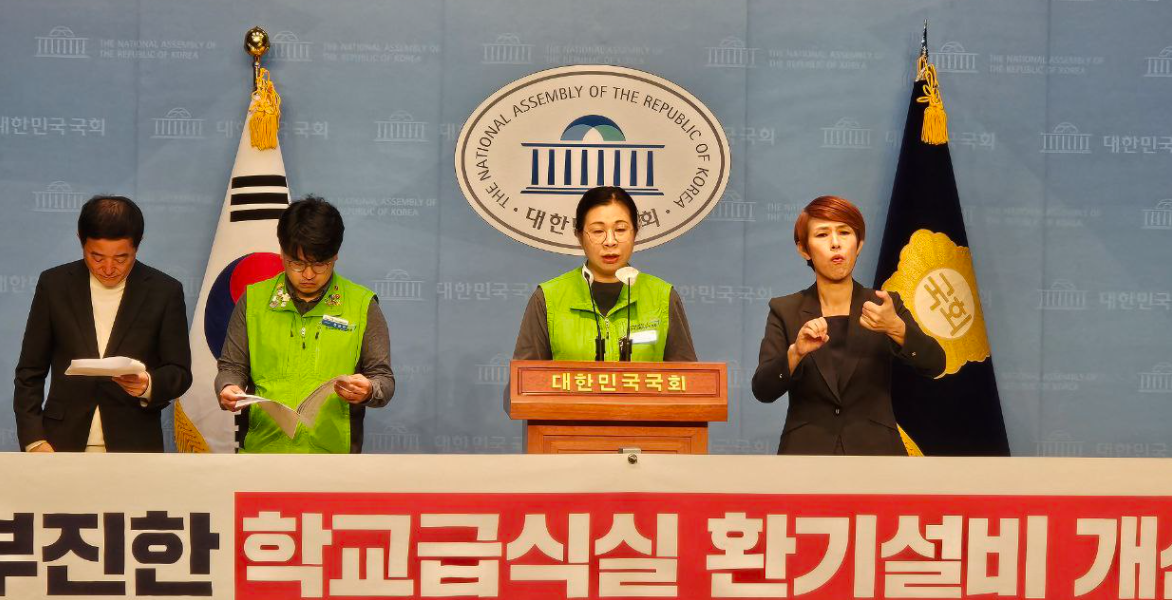 공공운수노조 전국교육공무직본부와 강득구 국회의원은 5일 국회소통관에서 기자회견을 열고 학교 급식실 환기설비 개선 지지부진과 급증하는 산업재해에 대한 대책 마련을 촉구했다.