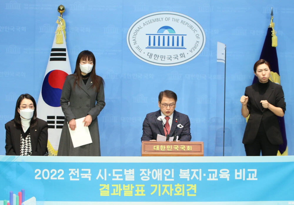 한국장애인단체총연맹(이하 한국장총)은 12일 오전 10시 20분, 여의도 국회의사당 국회소통관에서 지역별 장애인복지·교육 수준을 비교 조사하는 ‘2022 전국 시·도별 장애인 복지·교육 비교 조사’ 결과 발표 기자회견을 개최했다.