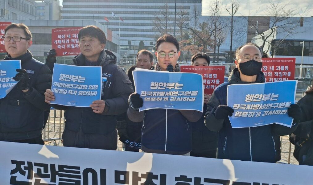 한국지방세연구원에서 29세 청년 직원의 사망 사건이 직장 내 괴롭힘으로 공식 인정된 가운데, 공공운수노조와 공공연구노조가 행정안전부의 차기 원장 ‘낙하산 인사’ 시도 중단을 강력히 촉구했다. 노조는 행안부 출신 전관들이 독점해 온 기형적인 지배구조가 조직을 망가뜨렸으며, 경영진의 사건 은폐 의혹과 책임론이 불거진 상황이라고 밝혔다.
