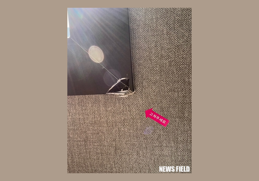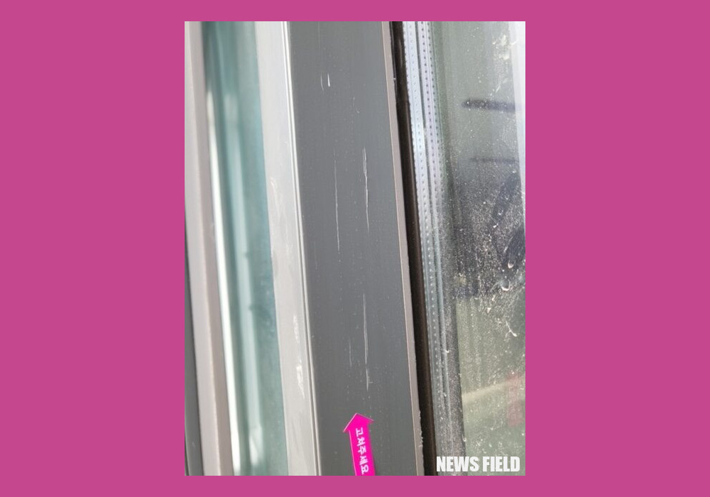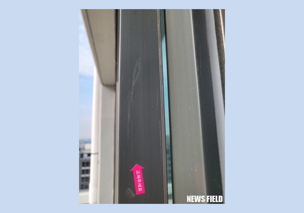 A씨는 “저가 샷시(창호)와 마감재들을 사용하고, 제대로 된 시공도 하지 못해 샷시는 창문만 닫아도 심하게 흔들리고, 긁히고, 구멍이 뚫려 있고, 찌그러져 있다. 비전문가가 육안으로만 보기에도 중대한 시공 문제가 있다. 브랜드 샷시의 반 값도 안 하는 원가의 저가 샷시에는 그 흔한 보호 필름 하나 붙어있지 않았다”고 지적했다.