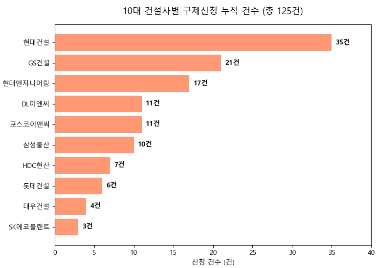 ■ 10대 건설사 구제신청 3년간 125건…현대건설, 누적 35건으로 최다