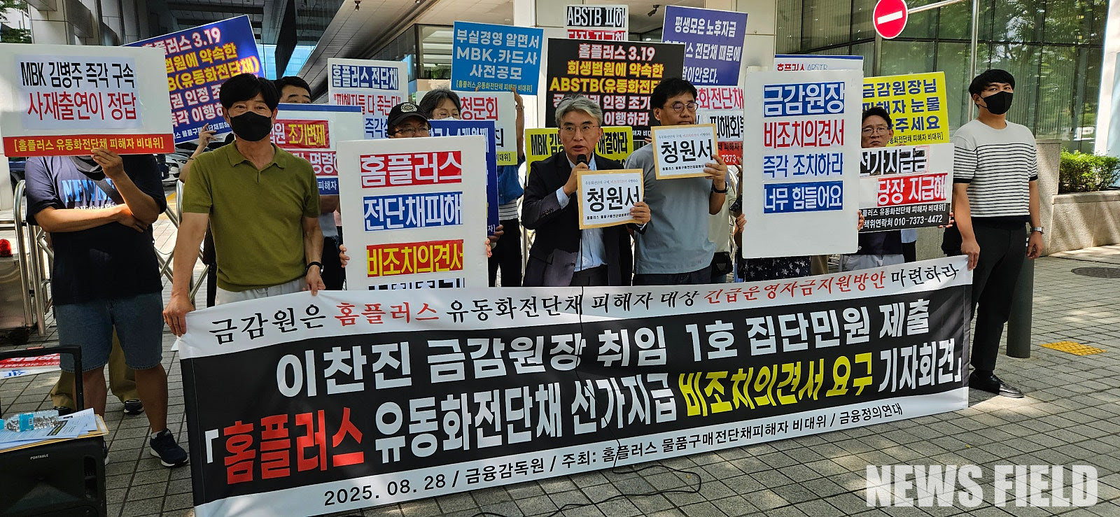 2025년 8월 28일 목요일 오전 10시 30분, 금융감독원 앞에서 개최된 ‘홈플러스 유동화전단채 선·가지급 비조치의견서 요구 기자회견’에서 피해자들은 금감원의 적극적인 개입과 증권사들의 긴급 자금 지원을 촉구했다. 이들은 특히 라임·디스커버리 사태에서처럼 ‘비조치의견서’를 통한 선지급 방식의 유동성 지원이 필요하다고 주장했다.