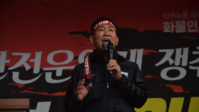 민주노총 공공운수노조 화물연대본부는 19일 오후 2시, 전국 16개 지역본부에서 총 8500명이 참가한 가운데 ‘화물운송산업 구조개악 반대! 차종·품목 확대 안전운임제 쟁취! 화물연대 전국 동시다발 결의대회’를 진행했다.