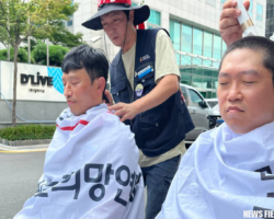 대회의 마지막 순서로는 임수열 지부장과 조영진 사무국장이 생활임금 보장과 직접고용 쟁취를 다짐하며 삭발식을 진행했다.