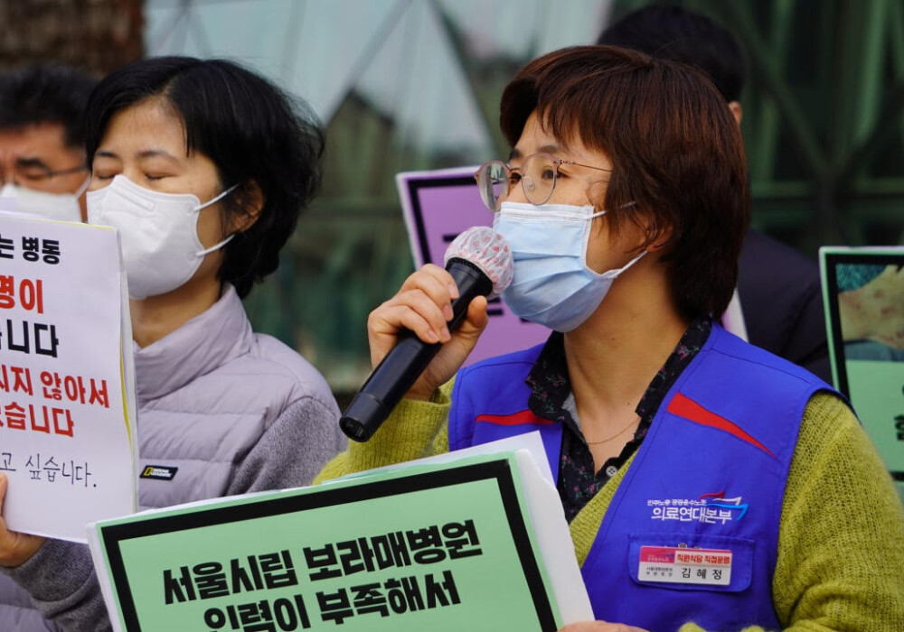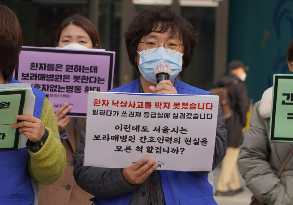 “‘서울시는 도대체 무엇을 하고 있습니까. 보라매병원의 간호사들이 환자를 돌보지 못하고 이제 거리로 나와서 환자를 돌보기 위한 것을 얘기하기까지 서울시는 왜 아무런 역할도 하고 있지 않습니까. 모든 간호사들이 그리고 보라매병원에서 일하는 모든 직원들이 이제는 여기서 일하다가는 환자들을 모두 죽이겠다라고 하는 그 절박함 때문에 거리로 나올 수밖에 없습니다. 오세훈 서울시장 이제 여기 있는 사람들의 목소리를 듣고 당장 나와서 해결책을 제시해 주기 바랍니다”
