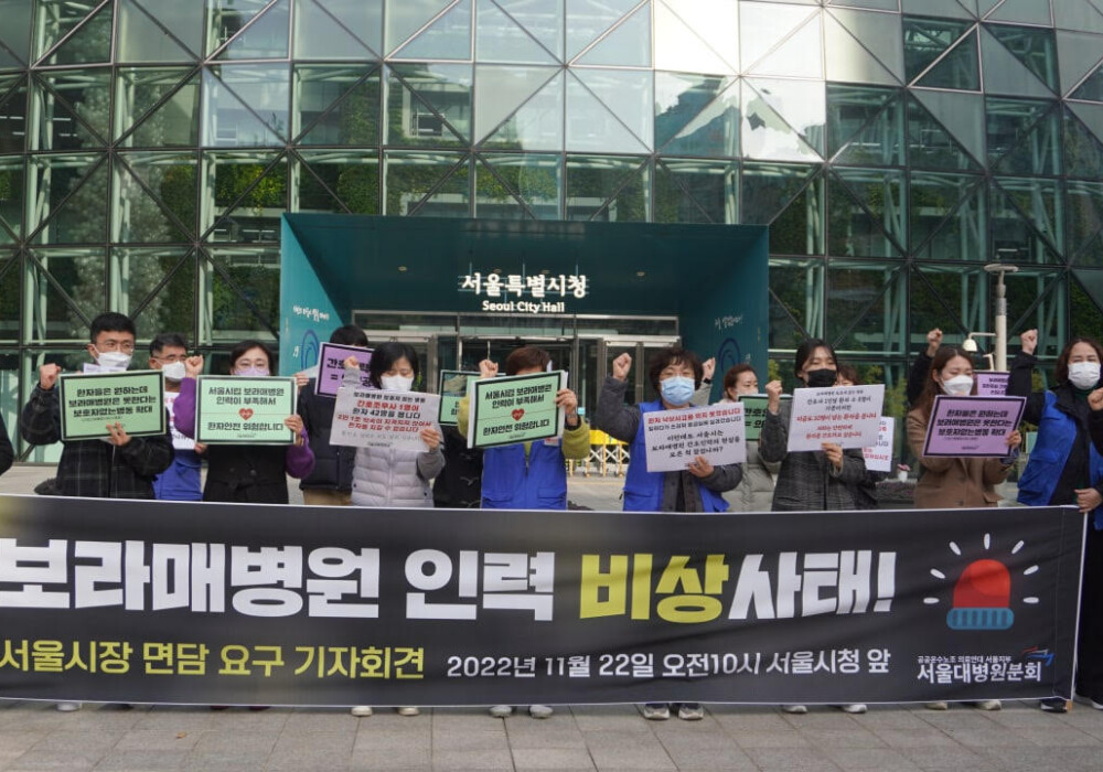 22일 오전 10시 시청 앞에서 ‘보라매병원 인력부촉 해결을 위한 서울시장 면담촉구’ 기자회견이 열렸다.