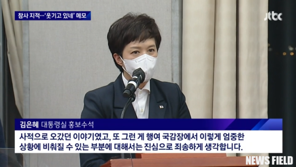 용혜인 기본소득당 상임대표가 ‘웃기고 있네’ 필담으로 논란이 된 김은혜 홍보수석을 경질해야 한다고 주장했다. 용 상임대표는 오전 9시 30분 제10차 상무위원회에서 “대통령실 공직자들의 국격 훼손은 안타까움을 넘어 어처구니가 없을 지경”이라며, “윤 대통령이 해외순방을 떠나기 전 빠르게 경질해야 한다”고 주장했다.