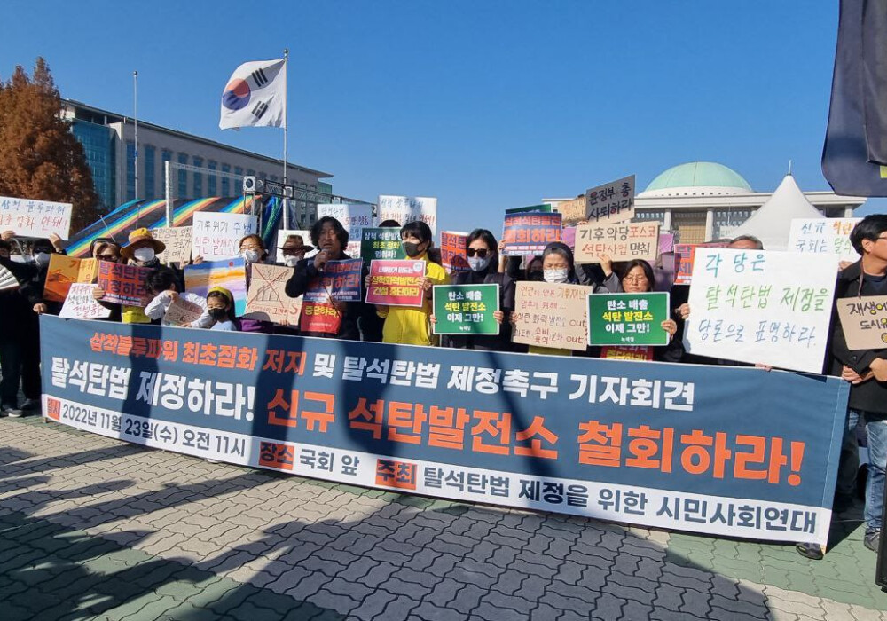 9월 30일 ‘신규 석탄발전소 철회를 위한 탈석탄법 제정’에 관한 청원이 5만 명을 달성해 국회에 회부됐지만, 국회 거대 양당은 묵묵부답이다.